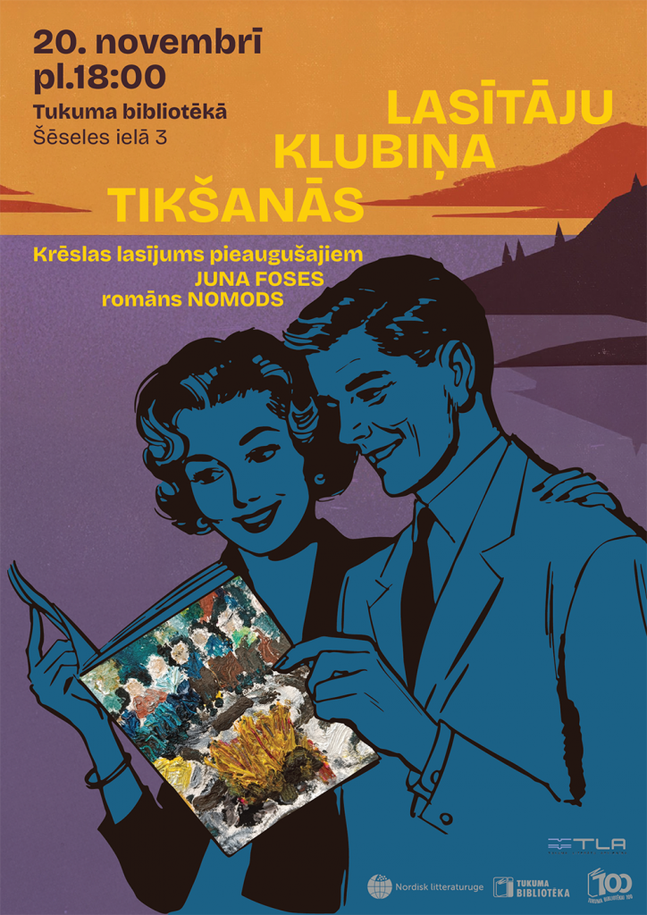 20. novembrī pl. 18.00. tiekamies Lasītāju klubiņā. Šajā reizē Ziemēlvalstu literatūras nedēļas ietvaros Krēslas stundas lasījums jauniešiem un pieaugušajiem. Iepazīsimies ar norvēģu autora Juna Foses romānu “Nomods” (2007). “Nomods” ir pirmā daļa no “Triloģijas”, par kuru Fose 2015. gadā saņēma Ziemeļu Padomes literatūras balvu.