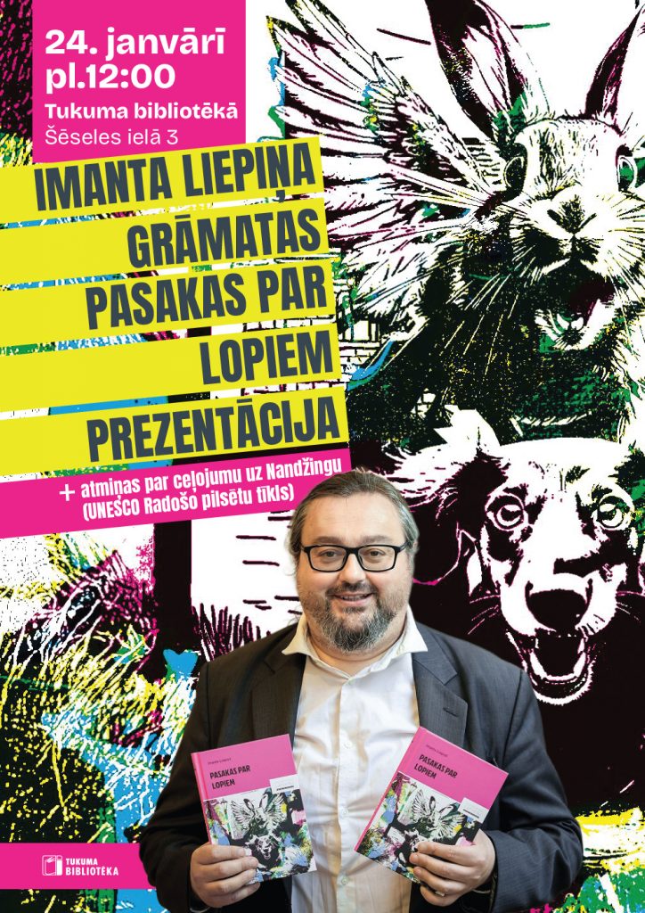 24. janvārī pl. 12.00 tiksimies ar autoru Imantu Liepiņu, lai iepazītos ar viņa jaunāko grāmatu “Pasakas par lopiem”, kā arī uzzinātu aizraujošus stāstus un atmiņas no ceļojuma uz UNESCO Radošo pilsētu tīkla dalībnieci Nandžingu (Ķīna).