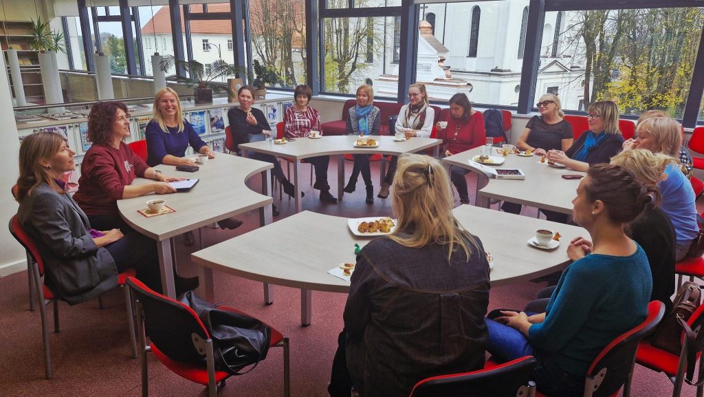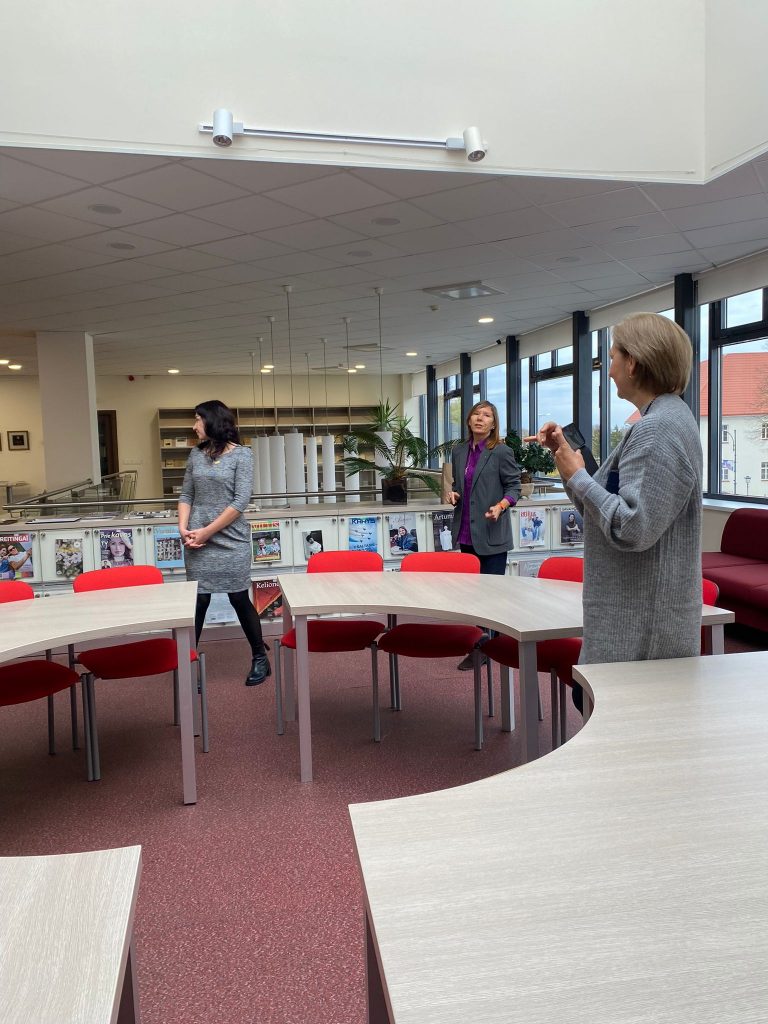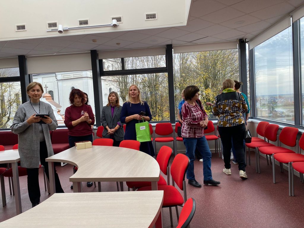 30. oktobrī devāmies pieredzes braucienā uz septiņu pakalnu pilsētu Telši, Lietuvā. Te Karolinas Praniauskaites publiskajā bibliotēkā mūs sirsnīgi uzņēma direktore Jolanta Zubiene un kolēģi.